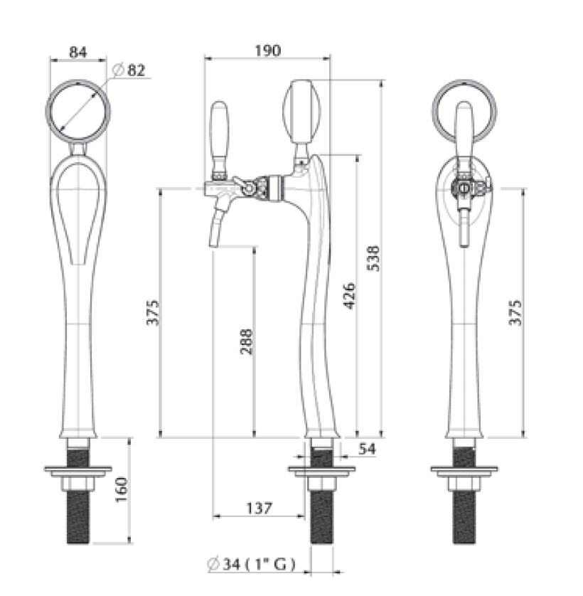 Tapzuil Ery ICE 1 x 5/8“ chroom met LED